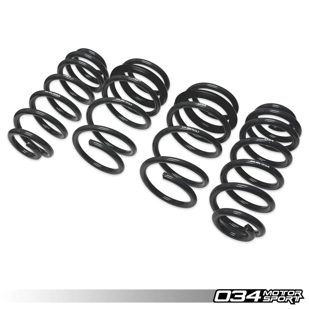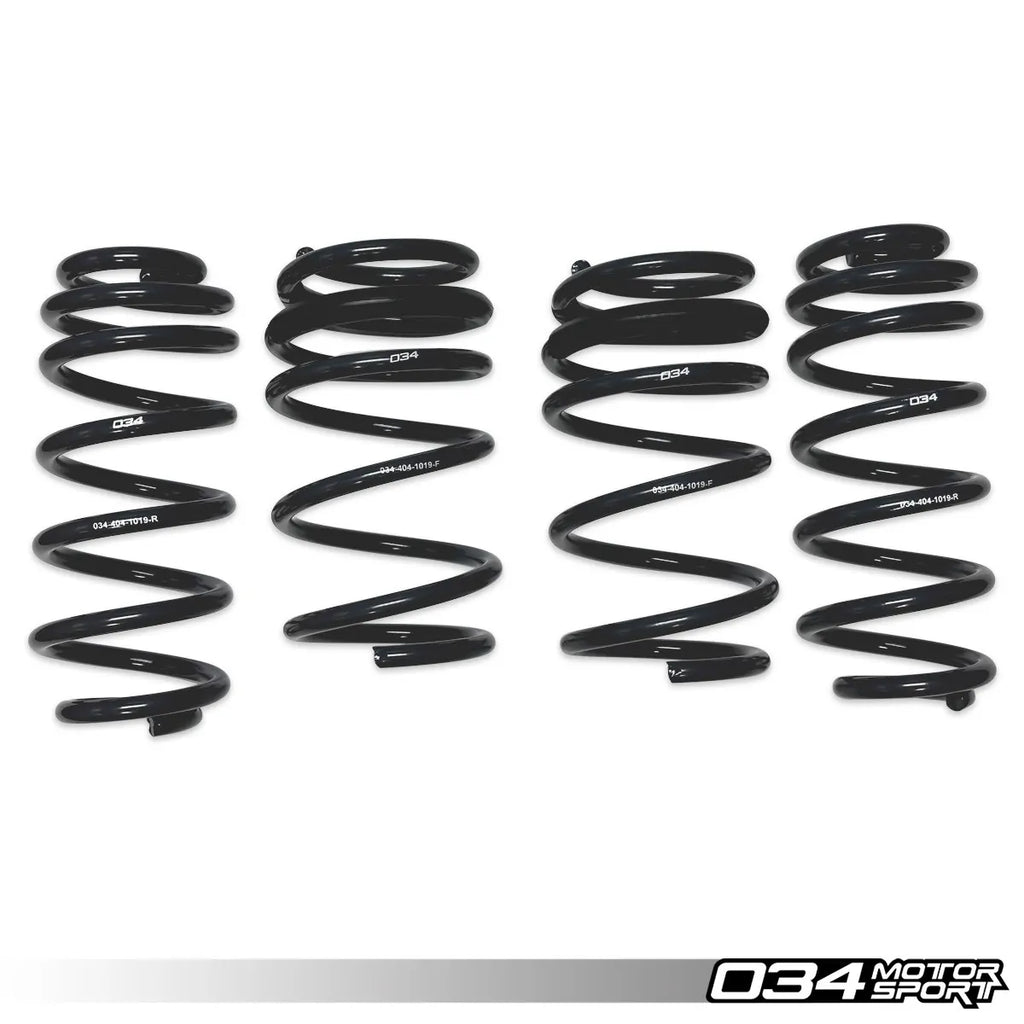 De 034 Motorsport Dynamic+ Verlagingsveren zijn speciaal ontworpen voor Audi S3 8Y-eigenaren die hun voertuig willen verlagen zonder concessies te doen aan rijcomfort of prestaties. Deze veren bieden een perfecte balans tussen een sportieve, lage houding en een comfortabel rijgedrag, waardoor ze ideaal zijn voor dagelijks gebruik en sportieve ritten. Dankzij de zorgvuldig geselecteerde verenspecificaties en het unieke dual-rate ontwerp zorgen deze veren voor een aanzienlijke verbetering van de wegligging, chassiscontrole en algehele rijdynamiek. Bovendien helpen ze om de body roll en onderstuur te verminderen, wat resulteert in een preciezer stuurgedrag en meer vertrouwen in bochten. De Dynamic+ Verlagingsveren zijn in-house ontwikkeld en uitgebreid getest door het engineeringteam van 034 Motorsport op zowel de weg als het circuit. Dit omvatte maanden van testen, duizenden kilometers woon-werkverkeer en talloze dagen op het circuit. Hierdoor is een set veren ontstaan die perfect aansluit op de standaard dempers van de Audi S3 8Y, met als resultaat een verlagingskit die zorgt voor verbeterde rijprestaties zonder in te boeten op comfort. Deze veren worden in de Verenigde Staten vervaardigd in een ISO 9001 gecertificeerde fabriek en zijn shot-peened en gepoedercoat om duurzaamheid te garanderen. De verlagingsveren zorgen voor een verlaging van ongeveer 25 mm (1 inch) aan zowel de voor- als achterkant van het voertuig, wat bijdraagt aan een agressieve en functionele look zonder de rijeigenschappen negatief te beïnvloeden. Voor een verbeterde rijervaring biedt 034 Motorsport ook Dynamic+ Coil Spring Sleeves om geluid tussen de veren te verminderen, wat vooral nuttig kan zijn bij zwaardere belasting. Geschikt voor Audi S3 8Y modellen met zowel standaard vering als Dynamic Chassis Control (DCC).