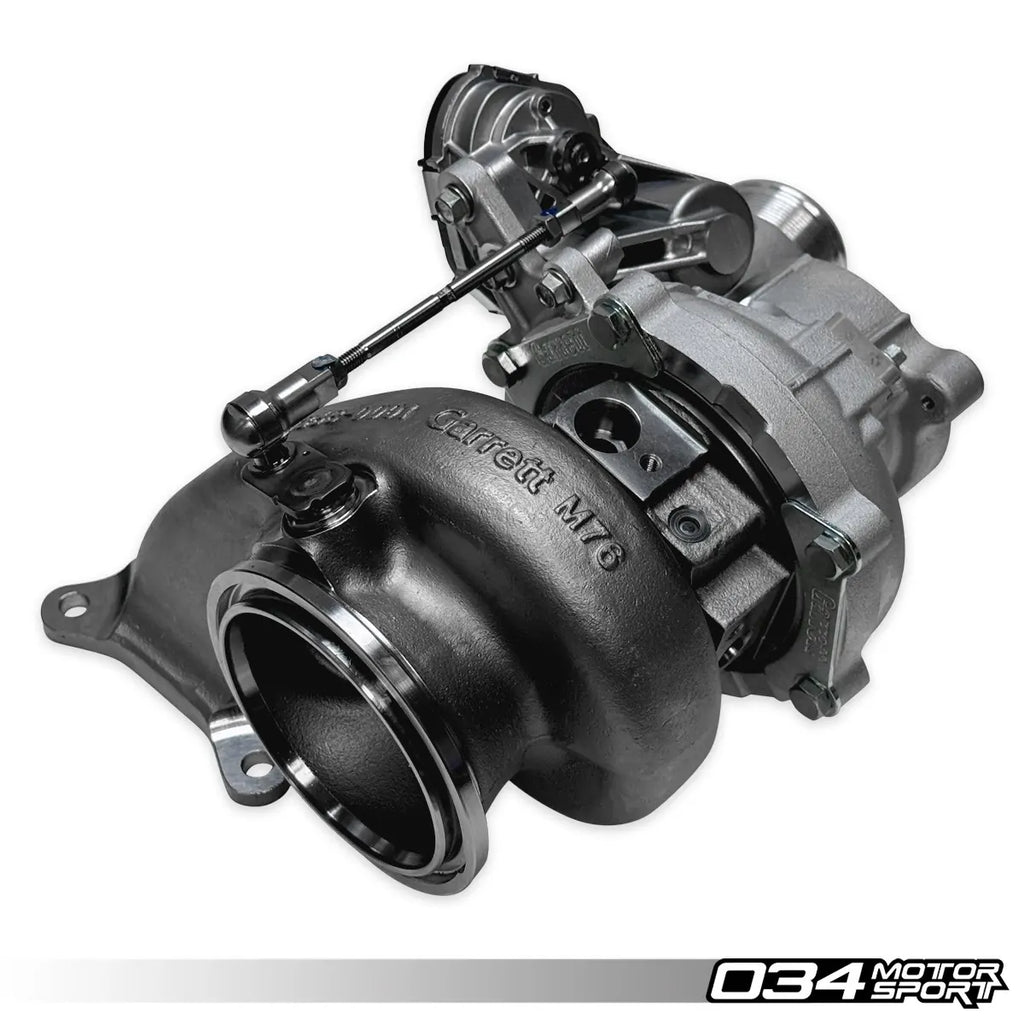De Garrett PowerMAX GT2563S Turbocharger Upgrade is een direct-fit prestatie-upgrade, speciaal ontworpen voor de 2.0L EA888 Evo4 motoren in de Mk8 Golf R en Audi 8Y S3. Deze turboupgrade is perfect voor enthousiastelingen die hun motorprestaties aanzienlijk willen verhogen zonder de OEM-pasvorm aan te tasten. Met +20% meer compressorstroom en +37% meer turbineflow in vergelijking met de originele turbo, biedt de GT2563S indrukwekkende prestaties, zowel op straat als op het circuit. Deze turbo is uitgerust met de nieuwste generatie compressor- en turbinewieltechnologie van Garrett, wat zorgt voor maximale stroom en efficiëntie. Het gebruik van een Mar-M legering voor het turbinewiel en een robuuste twin-scroll turbinebehuizing van roestvrij staal, bestand tegen temperaturen tot 1050°C, maakt deze turboupgrade extreem duurzaam. Belangrijk om op te merken is dat deze upgrade een aangepaste software, zoals de 034 Motorsport Dynamic+ Stage 3 PMAX ECU-tuning (binnenkort beschikbaar), vereist om het volledige potentieel te benutten.