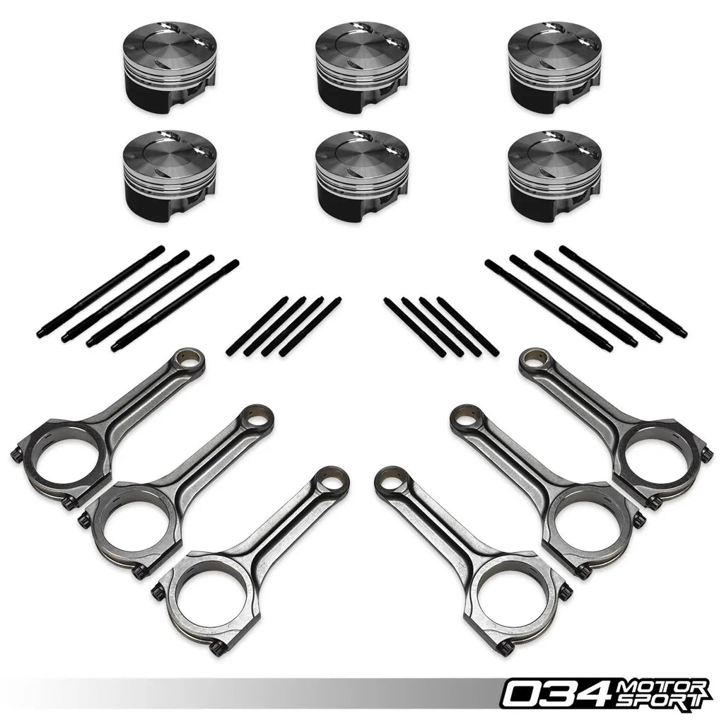 De 034 Motorsport Upgradepakket voor de onderste motor is speciaal ontworpen voor de Audi EA839 3.0T Turbocharged Engines, te vinden in de B9/B9.5 Audi S4/S5/SQ5. Dit upgradepakket bevat zorgvuldig geselecteerde componenten die de prestaties en betrouwbaarheid van je motor aanzienlijk verbeteren. Met producten die zijn gekozen door het ervaren Engineering Team van 034 Motorsport, biedt dit pakket alles wat je nodig hebt om je motor naar een hoger niveau te tillen. Het pakket bevat de Pauter 4340 Chromoly Cross-Beam Connecting Rod Set, die is ontworpen voor ongeëvenaarde sterkte en duurzaamheid. Deze verbindingstangen zijn gemaakt van 4340 CRMO staal en zijn CNC-gefabriceerd tot strikte toleranties. Ze zijn ideaal voor het verhogen van het koppel en de prestaties van je motor. Daarnaast omvat het pakket de Wagner Tuning Pro Series Main en Head Stud Sets, vervaardigd uit ultra-schoon gereedschapsstaal. Deze studs zijn ontworpen om een gelijkmatige spanningsverdeling te garanderen en zijn herbruikbaar, waardoor ze een kosteneffectieve optie zijn voor zowel racing- als dagelijkse toepassingen. Met de JE Forged Piston Upgrade krijg je een lagere compressieverhouding van 10.0:1, wat een perfecte aanvulling is op de Pauter verbindingstangen. Deze pistons zijn vervaardigd voor extra sterkte en duurzaamheid, met een euro-dish piston face en heavy-duty wrist pins voor optimale prestaties. Het 034Motorsport Bottom End Engine Upgrade Package is de perfecte oplossing voor elke autoenthousiast die zijn motorprestaties wil verbeteren. Met deze upgrade ben je verzekerd van betrouwbaarheid en kracht, wat essentieel is voor zowel racen als dagelijkse ritten. Upgrade je Audi vandaag nog en ervaar de voordelen van deze hoogwaardige componenten!