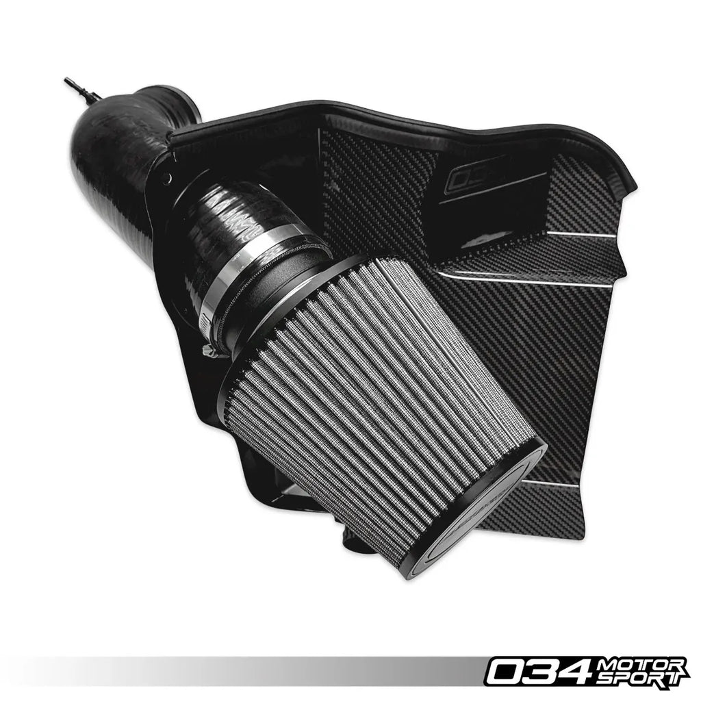 De S34 Koolstofvezel Inlaat voor de Audi B8/8.5 Q5/SQ5 3.0 TFSI biedt verbeterde kracht, een indrukwekkend supercharger geluid en algehele prestaties in een aantrekkelijke en kosteneffectieve verpakking. Dit systeem is ontwikkeld voor de supercharged 3.0 TFSI motor en zorgt voor merkbare stijgingen in vermogen en koppel, samen met een agressief inductiegeluid en het kenmerkende geluid van de supercharger. Er is veel aandacht besteed aan de ontwikkeling van deze prestatieverbeterende inlaatoplossing. Het geoptimaliseerde open-luchtbox ontwerp maakt gebruik van de fabrieksluchtinlaat om koele lucht naar het filter te geleiden. De ruime luchtbox bevat een grote 4" conische luchtfilter, vrij van beperkende omhulsels, en leidt lucht door een CFD-geoptimaliseerde 4-laagse siliconen inlaatbuis die de luchtsnelheid naar de gasklep soepel verhoogt. 034 Motorsport heeft het ontwerp grondig getest en verfijnd om maximale luchtstroom rondom het luchtfilter te waarborgen. Hierdoor ontstaat de juiste filtergrootte in de juiste filterbehuizing, wat zorgt voor maximale luchtstroom en prestaties met OEM-kwaliteit filtratie. Dit alles resulteert in een inlaat die de prestaties van uw motor optimaliseert zonder onnodige beperkingen.