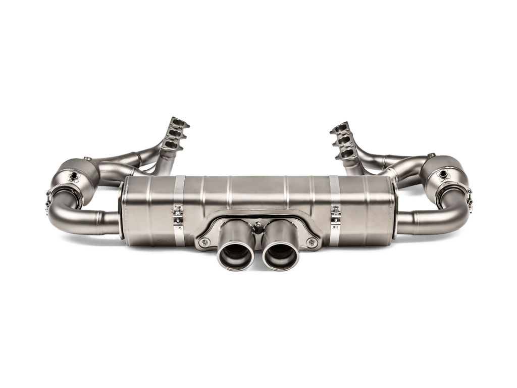 Het Evolution Race Header Set zet het slip-on systeem om in een volledig systeem, gebouwd voor het circuit, en geeft de Porsche GT3 extra prestaties om mee te matchen. Prachtig gemaakt van hoogwaardig titanium en voorzien van een coating, is de Evolution Race Line even indrukwekkend om naar te kijken als om te gebruiken. Van de met de hand vervaardigde titanium headers met 100 cpsi sportkatalysatoren en titanium flenzen - gegoten in de eigen gieterij van Akrapovič - tot aan de prachtig afgewerkte ronde titanium eindpijpen, de Evolution Race Line straalt pure kwaliteit uit. Het systeem biedt een perfect vermogensverloop vanaf 3.000 tpm tot aan de top van het vermogensbereik, ontworpen om de prestaties continu te verbeteren naarmate de toeren toenemen. Samen met verbeterd koppel en het maximale gewichtsverlies om de handling te verbeteren, zal het Evolution Race Line uitlaatsysteem de auto laten presteren als een ware cupracer - met een diepe, luide en krachtige Akrapovič-raceklank die past bij zijn prestaties. De aanval op de zintuigen van het Evolution Race Line systeem kan nog verder worden versterkt met de toevoeging van de perfect met de hand vervaardigde optionele carbon-vezel diffuser. Exclusief gemaakt voor de Porsche GT3, zal deze prachtige toevoeging zowel op als buiten het circuit een statement maken.