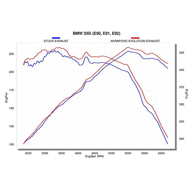 De volgende fase in het verbeteren van de prestaties van de 335i, voorbij de Slip-On optie, is het Evolution-uitlaatsysteem. Deze systemen, volledig gemaakt van roestvrij staal of titanium, kunnen 12 kg of zelfs een volledige 21 kg gewicht besparen, afhankelijk van het materiaal. Dat we geen compromissen hebben gesloten, blijkt uit extra vermogen en koppel, maar het draait niet alleen om het leveren van meer piekvermogen. Er zijn ook merkbare verfijningen in het hele toerentalbereik en de kracht wordt homogeen afgegeven. Het verminderen van de tegendruk leidt tot verbeteringen in het reactievermogen van het gaspedaal en de turbine. Evolution-performance-uitlaatsystemen klinken zeer sportief en weerspiegelen de formidabele aard van de krachtige zescilinder motor. Maak de look compleet met een set van twee prachtige uitlaatpijpen in titanium. Waarschuwing: Past niet op een originele trekhaak.