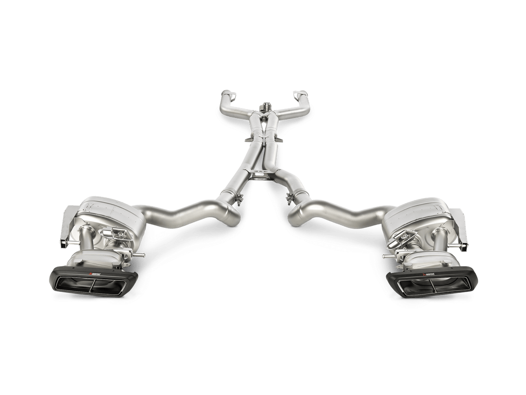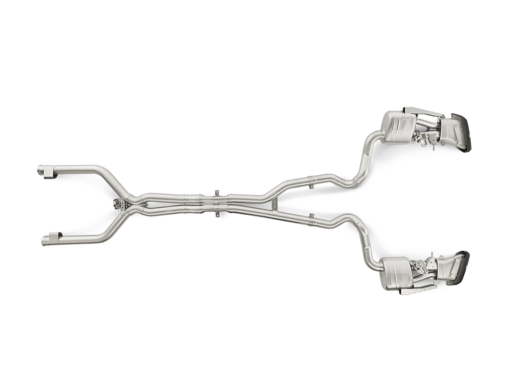 Perfect gevormd met speciaal ontwikkelde ultralichte titaniumlegeringen en afgewerkt met met de hand vervaardigde matte koolstofvezel uitlaatpijpen. Het systeem vervangt zowel de standaard als de performance-uitlaten die zijn gemonteerd op de Mercedes-AMG C 63 en C 63 S. Dit verbluffende systeem bevat onderdelen die zijn gegoten in de eigen gieterij van het bedrijf, met een actieve X-verbinding en een extra paar uitlaatkleppen achter de achterste dempers, ontworpen om optimale controle over het uitlaatgeluid te bieden voor het beste luistergenot. Met twee gedefinieerde geluidskarakteristieken en drie verschillende rijgeluidinstellingen is het systeem perfect afgestemd om het allerbeste geluid te leveren in alle modi. De optionele Akrapovič Sound Kit-controller stelt de gebruiker in staat de uitlaatklank te kiezen ongeacht de gekozen modus van het voertuig en is een aanbevolen upgrade bij vervanging van het standaard uitlaatsysteem. Een toename in vermogen en koppel en een enorme gewichtsbesparing van meer dan 45% maken dit een zeer serieuze prestatie-upgrade. Omdat het ECE-typegoedkeuring heeft zonder dat het nodig is om de ECU opnieuw in te stellen of andere onderdelen toe te voegen, is het gewoon een eenvoudige plug-and-play-installatie. Het prachtige Akrapovič Evolution Line (Titanium) uitlaatsysteem voegt prestaties en stijl toe, samen met een geweldig geluid.