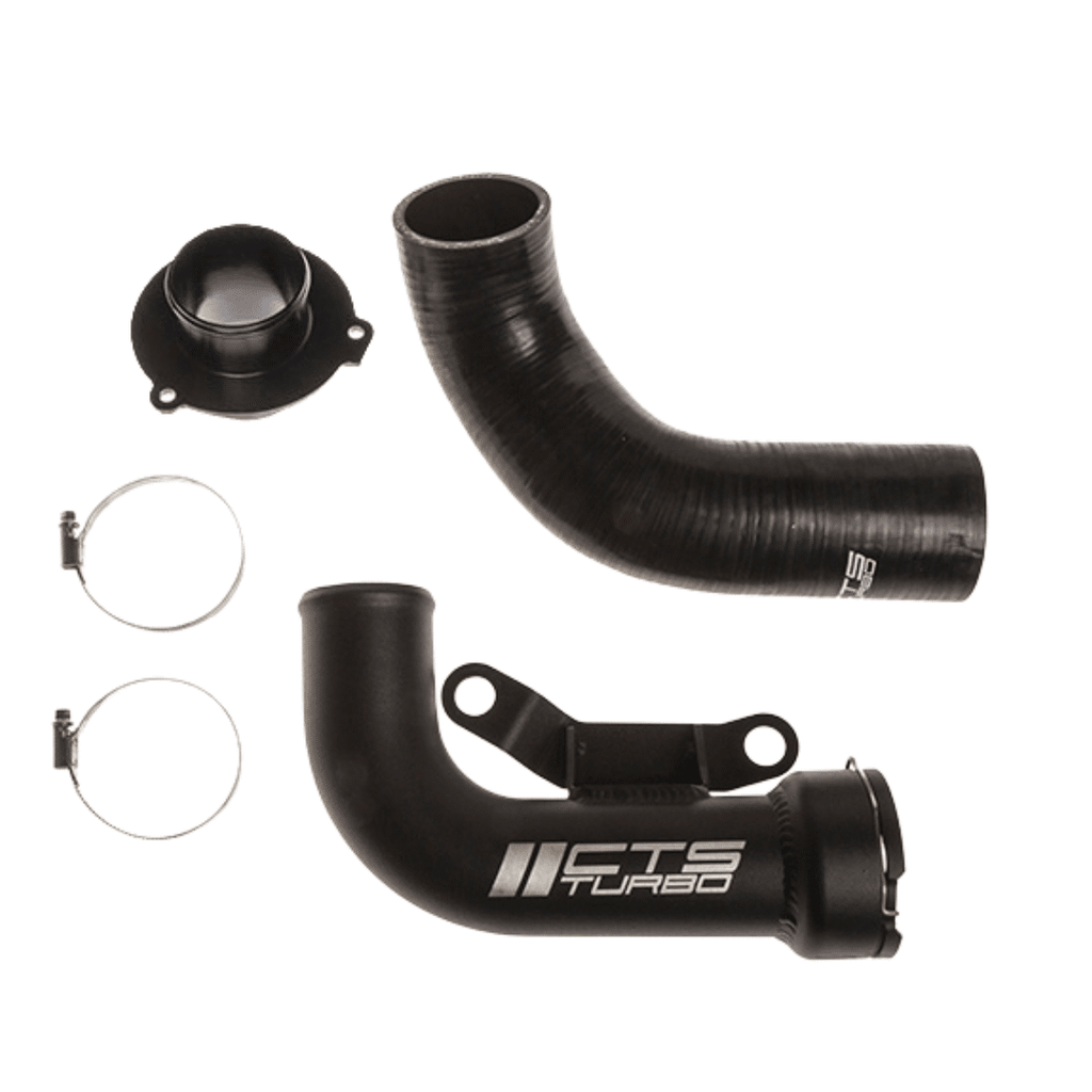CTS Turbo FSI (K03) Turbo Outlet Pipe (TOP) is ontworpen om de smalle 'pancake'-pijp te vervangen die als fabrieksuitrusting wordt geleverd op je K03 turbo uitgeruste FSI. Onze Turbo Outlet Pipe beschikt over een 2.25" diameter aluminium buis voor geoptimaliseerde doorstroming. De CNC-gefreesde billet aansluitflens maakt het verbinden van deze TOP met je FMIC letterlijk een fluitje van een cent. De geanodiseerde billet turbo naar TOP-connector, 2.25" koppeling en premium klemmen maken dit pakket compleet. Als je op zoek bent naar een eenvoudige bolt-on modificatie die de doorstroming en het vermogen optimaliseert, dan hoef je niet verder te zoeken.