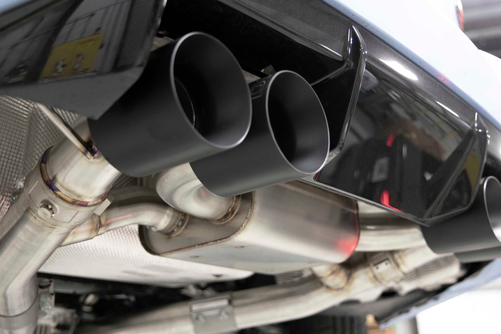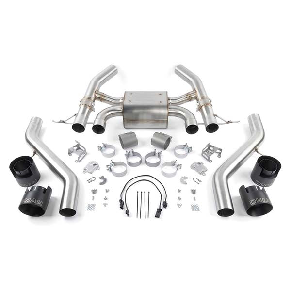 De Dinan axle-back uitlaat voor de BMW M2 G87 combineert prestaties met een verfijnde sound. Dankzij 76 mm leidingen (vs. 70 mm OEM) en een slim valved-systeem biedt deze RVS-uitlaat een diepe, sportieve klank zonder storende drone in de cabine. Bij gesloten kleppen blijft de toon beschaafd, terwijl open kleppen een bijna rechte pijpconfiguratie creëren voor maximale beleving. De vier 114 mm keramisch gecoate eindstukken met Dinan-logo geven een OEM+ uitstraling met extra sportieve looks.