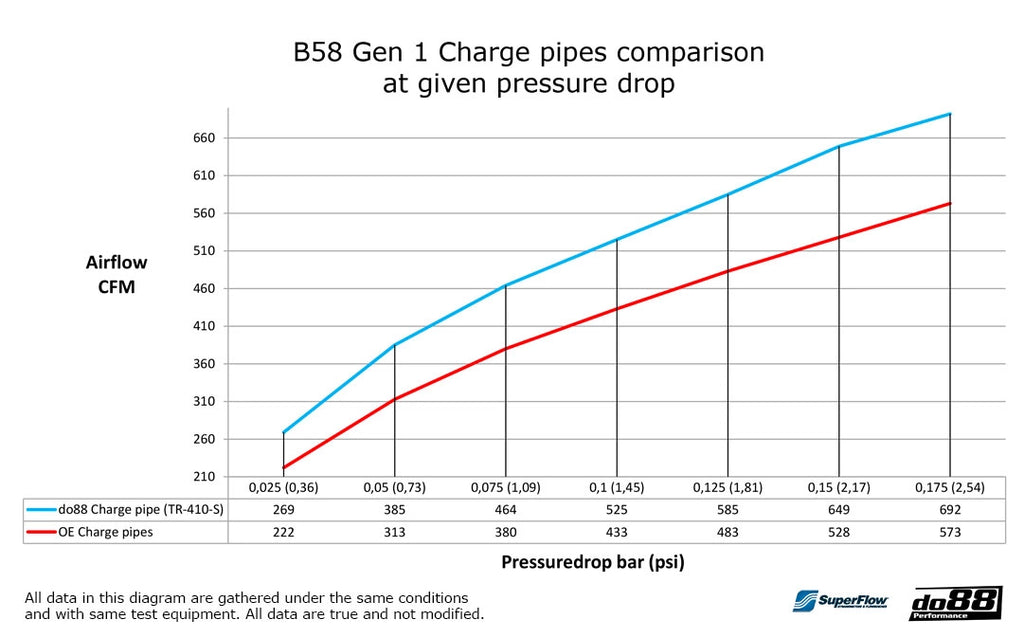 • 23% meer luchtstroom dan OEM: 649 CFM @ 150mbar vs. OEM 528 CFM.