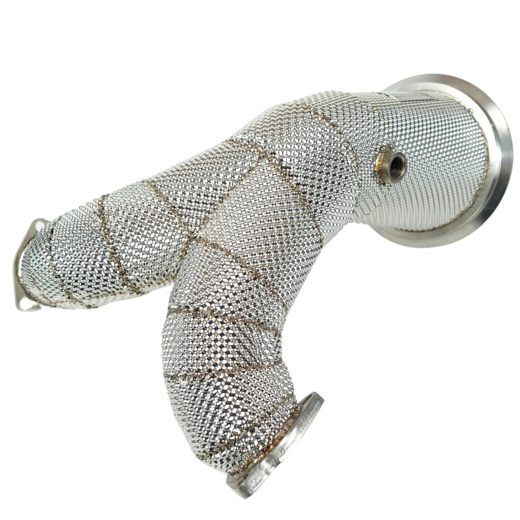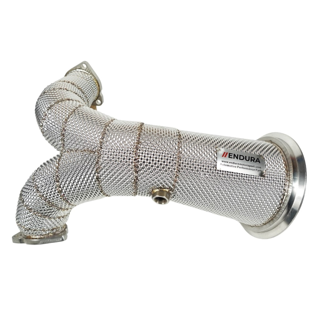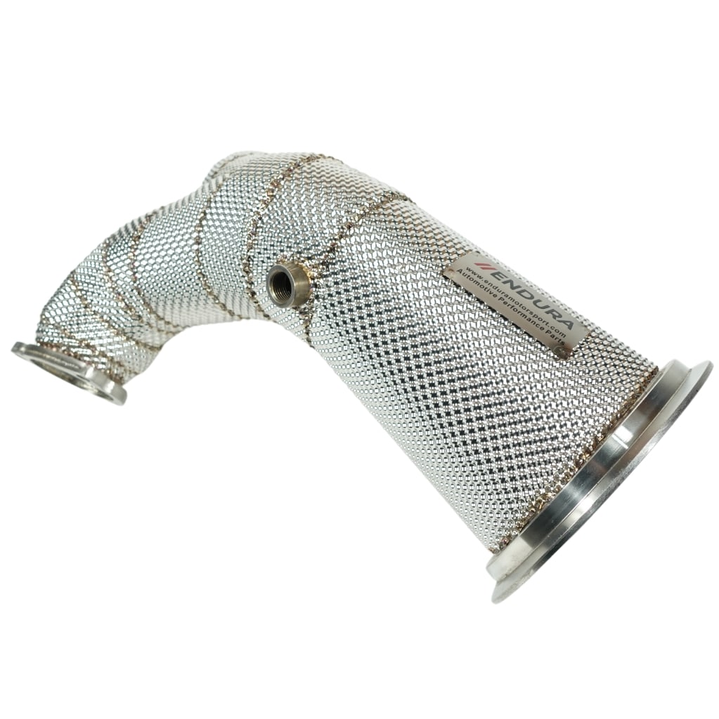 Upgrade jouw Audi S4 of S5 B9 met de hoogwaardige Endura Motorsport downpipe met geïntegreerd hitteschild. Deze downpipe heeft een aanzienlijk grotere diameter dan origineel, wat zorgt voor een optimale doorstroming van uitlaatgassen, meer vermogen en een agressiever geluid. De downpipe past perfect tussen de turbo en de middenpijpen zonder enige hardware-aanpassingen en biedt de ideale balans tussen kwaliteit, prijs en prestaties.