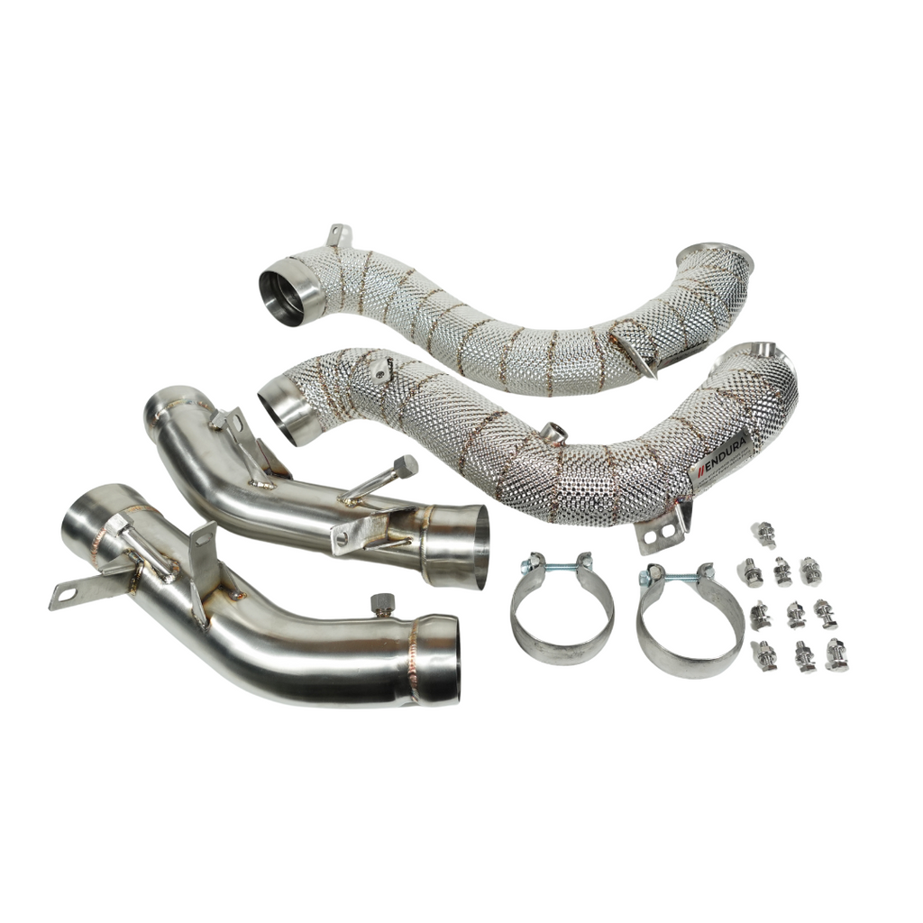 Geef je Mercedes C63 of C63S AMG W205 de upgrade die hij verdient met de Endura Motorsport Downpipes, speciaal ontwikkeld voor modellen vanaf bouwjaar 2018 met OPF / GPF roetfilter. Met een indrukwekkende diameter van 3.5" (90 mm) zorgen deze downpipes voor maximale flow, meer vermogen en een rauw V8-geluid – allemaal zonder aanpassingen. Perfect voor wie het maximale uit zijn AMG wil halen, zowel qua prestaties als sound.