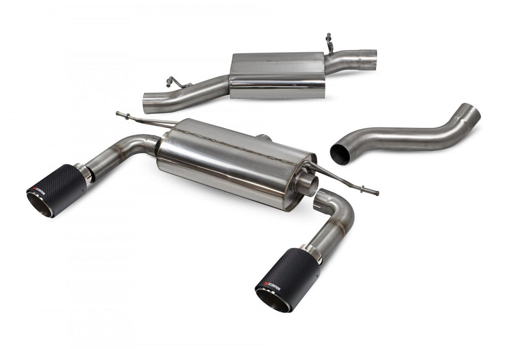 De Resonerend Cat-Back-systeem is speciaal ontworpen voor de Audi TT MK3 2.0TFSi Quattro Non GPF uit de jaren 2015 - 2019. Dit hoogwaardige uitlaatsysteem is ontwikkeld om de prestaties van uw voertuig te verbeteren en een sportieve geluidservaring te bieden die perfect aansluit bij de dynamiek van de auto. Scorpion is een toonaangevend merk in de wereld van prestatie-uitlaten en staat bekend om zijn aandacht voor detail en kwaliteit. Sinds de jaren '80 produceert Scorpion uitlaten die niet alleen de prestaties verbeteren, maar ook de uitstraling van voertuigen optimaliseren. Hun producten zijn ontworpen met een focus op duurzaamheid en efficiëntie, waardoor ze populair zijn bij autoliefhebbers en racers. De Resonerend Cat-Back-systeem biedt een uitstekende balans tussen geluid en prestaties. Het unieke ontwerp zorgt voor een diep, sportief geluid bij acceleratie, zonder overmatige herrie tijdens het cruisen. Dit maakt het systeem ideaal voor dagelijks gebruik, terwijl het ook voldoet aan de eisen van de meest veeleisende autoliefhebbers. De installatie van het Resonerend Cat-Back-systeem is eenvoudig en vereist geen ingrijpende aanpassingen aan uw voertuig. Het systeem kan direct worden gemonteerd, wat betekent dat u snel kunt profiteren van de verbeterde prestaties en het sportieve geluid. Of u nu op zoek bent naar een upgrade voor uw dagelijkse rijervaring of naar iets dat geschikt is voor de racebaan, dit uitlaatsysteem biedt de perfecte oplossing.