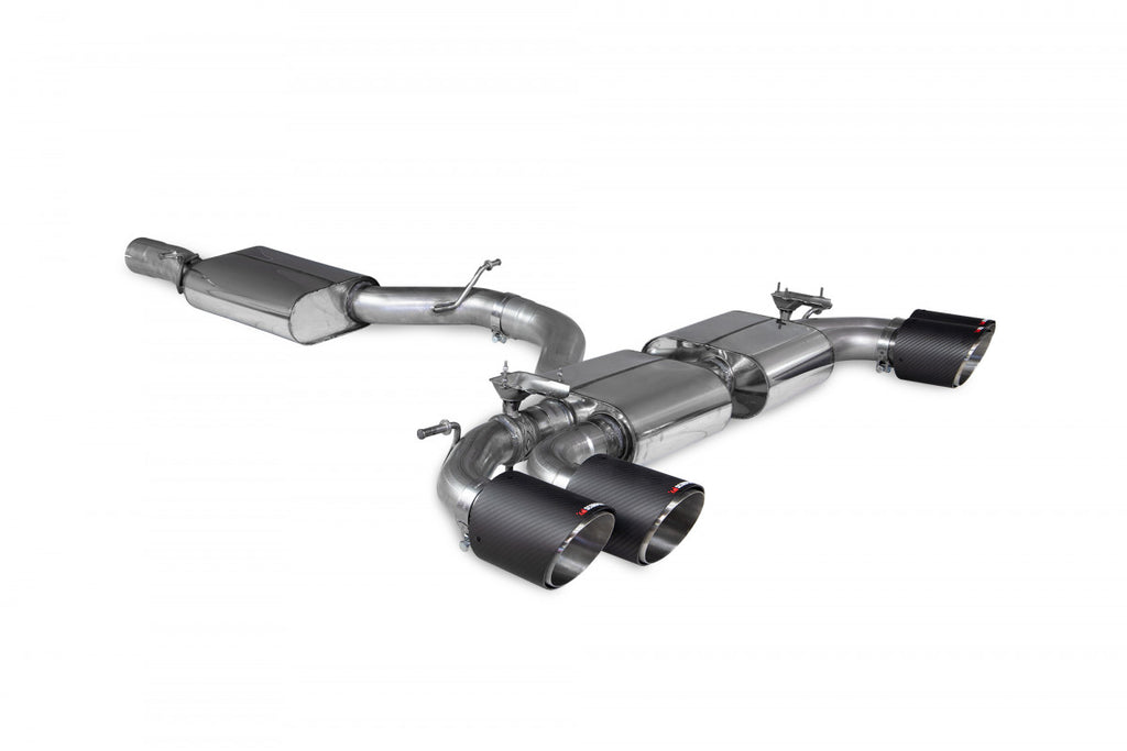 De Scorpion cat/gpf back systeem voor de Audi S3 2.0TFSi 8Y Quattro (Sportback) is een uitmuntende keuze voor autoliefhebbers die op zoek zijn naar zowel prestaties als een verbeterd geluid. Audi is al sinds de jaren '80 een pionier in de wereld van prestatiegerichte voertuigen, met de legendarische Audi Ur Quattro als een van de eerste all-wheel drive turbo productiemodellen. Deze innovatieve auto vestigde de aandacht op Audi als fabrikant van hoogwaardige sportauto's, en sindsdien heeft het merk zijn reputatie als fabrikant van prestaties bevestigd. De Scorpion uitlaatbouwers hebben deze rijke geschiedenis in gedachten gehouden bij het ontwerpen van deze geavanceerde uitlaatoplossing. Met de Scorpion cat/gpf back systeem kunt u kiezen uit verschillende uitvoeringen, waaronder resonated en non-resonated opties, die speciaal zijn ontwikkeld om het optimale geluid en de prestaties van uw S3 te verbeteren. Het systeem heeft een diameter van 80mm (3.15”) en is ontworpen om naadloos aan te sluiten op uw bestaande uitlaatsysteem, wat zorgt voor een gemakkelijke installatie zonder aanpassingen. Of u nu op zoek bent naar een discreet geluid voor dagelijks gebruik of een meer agressieve klank voor sportieve ritten, er is een optie die aan uw wensen voldoet. De valved en resonated optie biedt een meer verfijnde geluidsafstemming, die perfect is voor dagelijkse ritten. Dit systeem levert niet alleen een krachtiger geluid, maar zorgt ook voor een verbeterde luchtstroom, wat resulteert in betere prestaties. De kleppen in het systeem stellen u in staat om het geluidsniveau aan te passen, zodat u kunt genieten van een rustigere rit wanneer dat nodig is, terwijl u de mogelijkheid hebt om het maximale uit uw S3 te halen met een sportievere klank wanneer dat gewenst is.