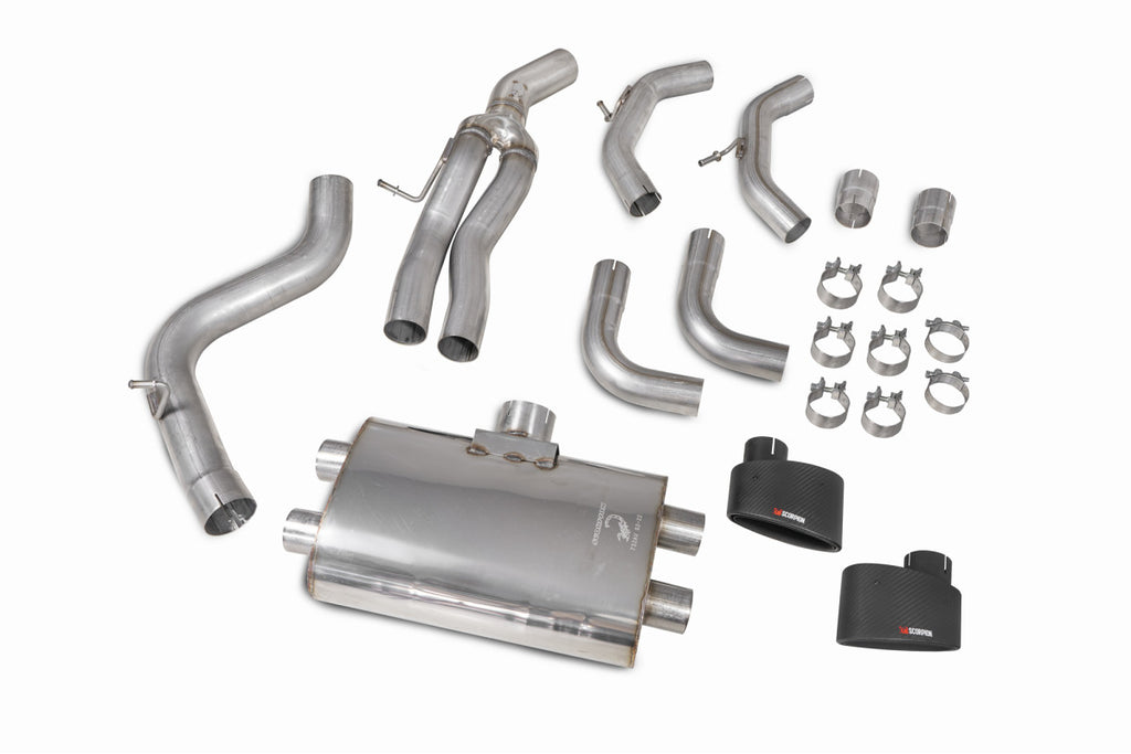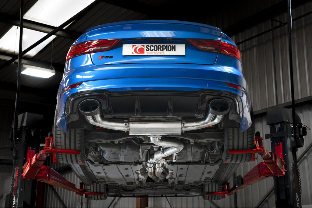 De Scorpion Catback Uitlaat is speciaal ontwikkeld voor de Audi RS3 8V Saloon/Sedan van de bouwjaren 2017-2018 (Non-GPF model). Deze hoogwaardige uitlaat is ontworpen om zowel de prestaties als het rijplezier naar een hoger niveau te tillen. Met een focus op het optimaliseren van de uitlaatgasstroom, levert deze uitlaat een significante verbetering in vermogen en reactietijd van de auto. De uitlaat is vervaardigd uit premium T304 motorsport grade roestvrij staal, wat niet alleen zorgt voor een langere levensduur, maar ook voor een aantrekkelijke uitstraling. Dankzij de keuze tussen valved en non-valved systemen, kunnen bestuurders het geluid van hun auto aanpassen aan hun persoonlijke voorkeur. Het valved systeem maakt gebruik van de originele motor en kan eenvoudig worden bediend met de rijmodi-schakelaar in de auto, terwijl het non-valved systeem een continu sportiever geluid biedt. Met CNC gebogen constructie is de uitlaat ontworpen voor een betere gasdoorstroming. Dit vermindert verstoppingen en bevordert een scherpere throttle respons, wat leidt tot een verbeterde rijervaring. Bovendien is de Scorpion Catback Uitlaat lichter dan het originele systeem, wat bijdraagt aan een beter gewicht-vermogenverhouding. Bij het installeren op een auto zonder GPF of met een sport-/Downpipe Decat, wordt het resonated systeem aangeraden om ongewenst geluid in de cabine te minimaliseren. Voor GPF-modellen is het non-resonated systeem ideaal om de authentieke klank van de auto naar voren te brengen. Om de sportieve uitstraling van de Audi te complementeren, zijn de premium carbon Ascari Evo eindstukken ontworpen om perfect in de achterbumper te passen. Met de Scorpion Catback Uitlaat wordt elke rit een ware beleving!
