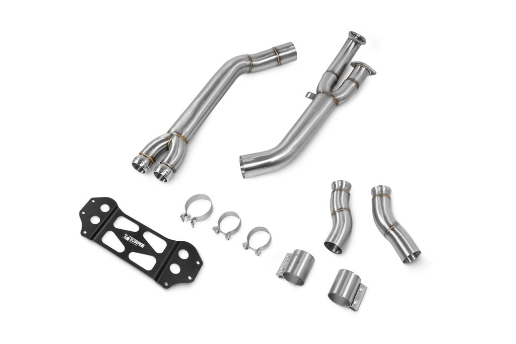De Scorpion Enkele middenpijp is ontworpen voor de BMW G80 M3 ROW NON-GPF, G82 M4 ROW NON-GPF, en G81 M3 Touring ROW NON-GPF modellen, inclusief de Competition en xDrive versies van de bouwjaren 2021 tot 2024. Dit geavanceerde mid-pipe systeem combineert prestaties en stijl, waardoor het de perfecte upgrade is voor elke autoliefhebber. Met een rijke historie in de ontwikkeling van performance-uitlaten, biedt Scorpion een systeem dat gebruikmaakt van T304 motorsportkwaliteit roestvrij staal. De is Scorpion Enkele middenpijp vervaardigd met CNC-gebogen technologie, wat zorgt voor een uitstekende gasdoorstroming en verbeterde prestaties, evenals een significante gewichtsreductie in vergelijking met OEM-systemen. De mid-pipe is uitgerust met een enkele 89.9mm/3.5” diameter die zorgt voor een betere afvoer van uitlaatgassen, verbeterde turbo-reactietijd en een krachtig, sportief geluid dat de rijervaring verhoogt. Dankzij het ontwerp behoudt de bestuurder de controle over het geluidsniveau via de modus selectieknoop in de auto, wat zorgt voor een dynamische rijervaring. Met de keuze uit verschillende tailpipe stijlen, waaronder quad 114mm gepolijste/zwart keramische Daytona of de carbon Ascari, kunt u de uitstraling van uw voertuig verder personaliseren. De mid-pipe is compatibel met zowel de Scorpion halfsystemen als OEM-systemen, waardoor u de flexibiliteit heeft om het uitlaatsysteem aan te passen aan uw wensen.