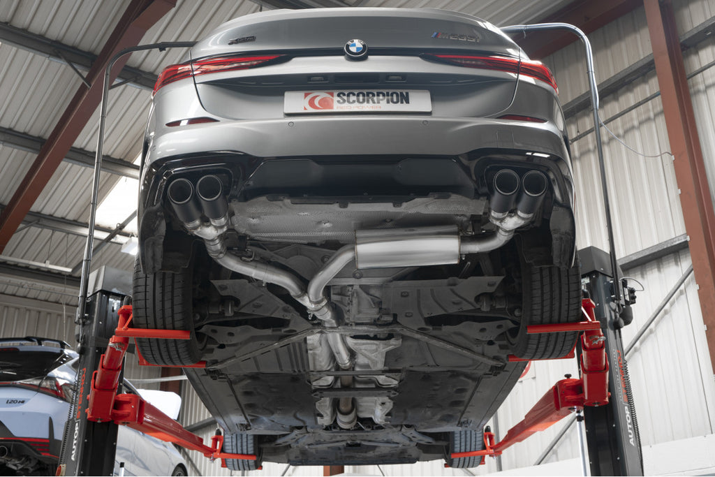 De Scorpion GPF-Back System is een geavanceerd uitlaatsysteem ontworpen voor de BMW M235i xDrive Gran Coupe van 2019 tot 2024. BMW heeft zich in de jaren '70 gevestigd als een toonaangevende fabrikant van prestatie-saloons, met de legendarische E30 M3 als een van de eerste modellen die de weg vrijmaakte voor een reeks indrukwekkende prestaties in de motorsport. Scorpion heeft een lange geschiedenis in het ontwikkelen van hoogwaardige uitlaatsystemen, beginnend met de E30 M3 en sindsdien voortdurend evoluerend. Dit premium uitlaatsysteem is vervaardigd uit T304 roestvrij staal en biedt een diameter van 70mm/2.75” voor een optimale gasdoorstroming. Dankzij de CNC-mandrel gebogen buizen maximaliseert dit systeem de prestaties door een verbeterde afvoer van uitlaatgassen. Wanneer het Scorpion-systeem is geïnstalleerd, ervaren bestuurders een aanzienlijke gewichtsreductie ten opzichte van het originele uitlaatsysteem, wat cruciaal is voor het verbeteren van de algehele rijervaring. Het systeem is uitgerust met een akoestisch ontwikkelde demper die ervoor zorgt dat er geen ongewenste resonantie optreedt, waardoor de rijervaring comfortabel blijft. Voor degenen die verlangen naar een luidere, sportievere klank, biedt Scorpion de optie voor een GPF-Delete, wat de geluidservaring verder versterkt. Daarnaast stelt Scorpion gebruikers in staat hun voertuigen te personaliseren met een breed scala aan uitlaattips. Klanten kunnen kiezen uit 90mm Carbon Ascari, Polished Daytona, Black Ceramic Daytona, of een unieke OE-fitment optie die perfect aansluit op de bestaande diffuser van de BMW. Met het Scorpion GPF-Back System combineert men niet alleen indrukwekkende prestaties, maar ook een unieke esthetiek en geluidservaring, waardoor de BMW M235i xDrive Gran Coupe een nog aantrekkelijkere auto wordt.