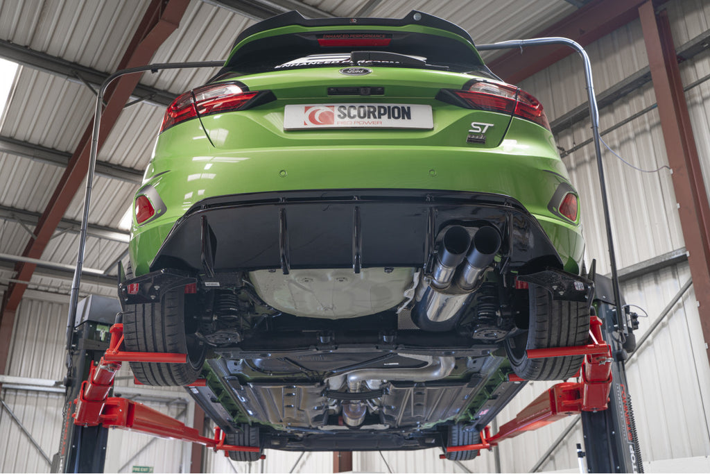 De SCORPION GPF-rugsysteem zonder ventiel is een hoogwaardige uitlaatoplossing voor de Ford Mk8.5 Fiesta ST (2022 - 2024). Ford heeft sinds de jaren '70 een sterke reputatie opgebouwd in het produceren van prestatiesportwagens, beginnend met de legendarische Mk1 Escort RS1600. Deze lange lijn van iconische modellen, waaronder de Escort RS Turbo en Sierra RS Cosworth, heeft altijd geprofiteerd van de innovatie van Scorpion in het ontwikkelen van prestatie-uitlaten. Dit nieuwe GPF-back systeem is ontworpen met een diameter van 70 mm / 2.75", vervaardigd uit premium T304 roestvrij staal, wat zorgt voor maximale prestaties en een betere gasdoorstroming. Dit systeem is speciaal ontwikkeld voor de Fiesta ST MK8.5 en biedt een aanzienlijk gewichtsbesparing ten opzichte van de originele uitlaat, wat cruciaal is voor een optimale rijervaring. De geluidsdemper is acoustisch ontwikkeld om ongewenste drone tijdens het rijden te elimineren en tegelijkertijd een sportief geluid te bieden dat de rijervaring versterkt. Voor de uitstraling van je auto biedt Scorpion drie handpicked stijlen van onze kenmerkende uitlaatpijpen: Polished Daytona, Carbon Ascari en Black Ceramic Daytona. Deze opties geven je de kans om je auto een persoonlijk tintje te geven met een ongeëvenaarde bouwkwaliteit. Rijders die hun prestaties verder willen verbeteren, kunnen overwegen de GPF-delete sectie toe te voegen aan hun opstelling. Onze technici hebben dit ontworpen voor volledige uitwisselbaarheid met zowel de OEM als Scorpion GPF-back uitlaten. Daarnaast bieden we ook high flow Fiesta downpipes aan, beschikbaar als Decat of Sports Cat, om de prestaties nog verder te optimaliseren. Voor diegenen die de ultieme prestatie willen, heeft Scorpion de Predator-systeem ontwikkeld, dat de gasdoorstroming aanzienlijk verbetert en de motorgeluiden versterkt, wat resulteert in de ongeëvenaarde Scorpion acoustics (alleen voor gebruik op gesloten circuits).