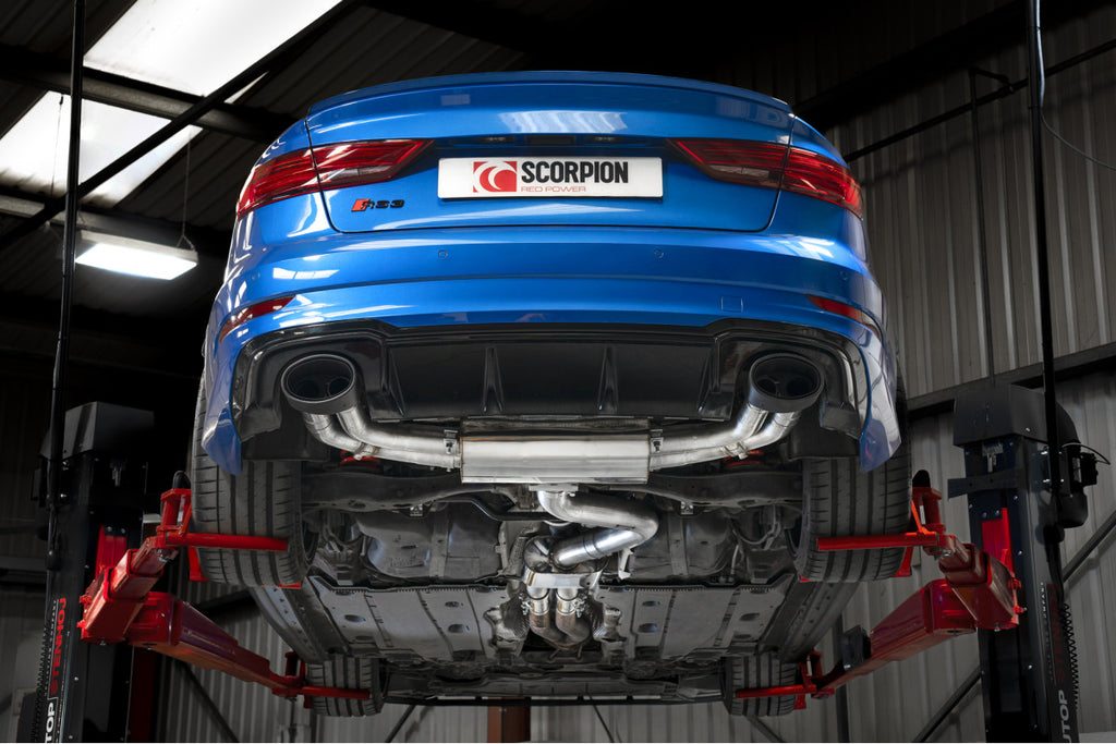De Scorpion Performance Uitlaat is speciaal ontwikkeld voor de Audi RS3 8V Limousine/Sedan van 2017 tot 2018 (Non-GPF model). Deze uitlaat verbetert niet alleen de prestaties, maar geeft ook een sportieve klank die de rijervaring naar een hoger niveau tilt. Met een focus op optimale prestaties en geluidskwaliteit, biedt deze uitlaat een perfecte balans tussen functionaliteit en esthetiek. De uitlaat is ontworpen met gebruik van hoogwaardige materialen, waaronder T304 RVS, dat zorgt voor een uitstekende duurzaamheid en weerstand tegen corrosie. Dankzij de 80mm/3.15” Cat/GPF-back systeem wordt de uitlaatgasdoorstroming aanzienlijk verbeterd, wat resulteert in een scherpere gasrespons en een merkbare toename in pk’s. Dit maakt elke rit dynamischer en spannender. De valved optie geeft bestuurders de mogelijkheid om het geluidsniveau naar wens aan te passen. Dit betekent dat je op rustige momenten kunt genieten van een subtiele klank, terwijl je bij sportieve rijomstandigheden kunt profiteren van een krachtige en diepere sound. De non-valved optie is ideaal voor diegenen die constant willen genieten van een sportieve klank zonder enige beperking. Bij de ontwikkeling van deze uitlaat zijn geavanceerde technieken zoals CNC Mandrel buigen toegepast, wat zorgt voor een uitstekende pasvorm en minder weerstand in het uitlaatsysteem. Dit leidt niet alleen tot betere prestaties, maar ook tot een gewichtsbesparing in vergelijking met het originele systeem, wat bijdraagt aan een betere algehele rijervaring. Om de sportieve uitstraling van de Audi RS3 te complimenteren, zijn de Ascari Evo tailpipes met zorg ontworpen om perfect in de achterste valance te passen.